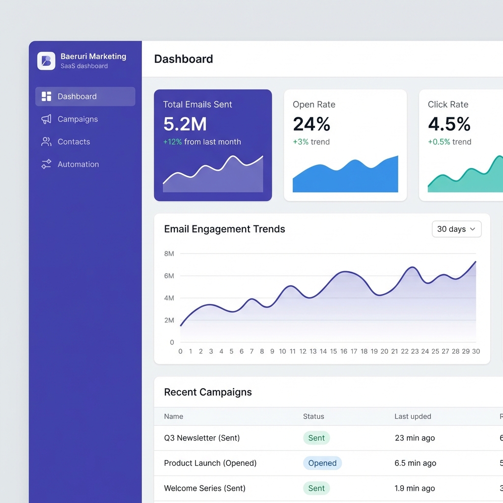 Utilisez nos serveurs optimisés ou connectez votre propre SMTP (Amazon SES, SendGrid) en marque blanche.