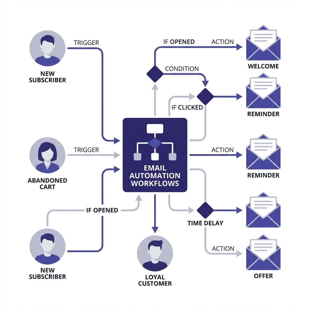 Créez des scénarios complexes : email de bienvenue, relance panier abandonné, séquences de nurturing. Tout est automatisé.